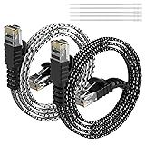 Elecan Cat 6 Flat Ethernet Cable 4 Feet/2 Pack, UL Listed Slim Patch Cord(from 2-300ft) Pure Copper, 10Gbps 500MHz,Nylon Braided Cat6 Cat5e Cat5 RJ45 Network Internet Cable+15 Ties