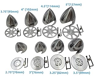 - Metal Propeller Spinner Dia 70mm-127mm CNC Plane Spinner for DLE Gasoline Engine DLE20 DLE30 DLE55 DLE111 DLE222 RC Airplane -- Description -- The propeller spinner is for Nitro/Gasoline engine RC Airplane. Fit 2-Blades propellers. There are 8 kinds of size spinners available, please choose the correct size for your plane before purchasing. Size A: Diameter 70mm(2.75in), single hole, Apply to DLE20,DLE20RA engines Size B: Diameter 76mm(3.00in), 9 holes, Apply to DLE30,DLE35RA engines Size C: Diameter 82mm(3.25in), 9 holes Size D: Diameter 89mm(3.50in), 9 holes, Apply to DLE40,DLE55,DLE61 engines Size E: Diameter 95mm(3.75in), 9 holes Size F: Diameter 102mm(4.00in), 9 holes, Apply to DLE40,DLE55,DLE61,DLE85,DLE111 engines Size G: Diameter 114mm(4.50in), 7 holes, Apply to DLE111,DLE120,DLE170 engines Size H: Diameter 127mm(5.00in), 7 holes, Apply to DLE170,DLE222 engines -- Specification & Features -- * Material: Aluminum alloy * Made by CNC, High precision, strong and durable -- Item Contains -- 1 piece of Metal Propeller Spinner for DLE Gasoline Engine