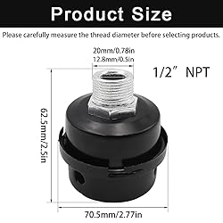 Material:The shell is made of coated metal, which is more durable. You can use this air cleaner to reduce noise Function:It can block dust and moisture in the air, thus improving the efficiency of the air compressor and reducing the noise emitted by the air compressor Size:68*60*60mm,94 grams,the thread type is 1/2" Product application:It can be used as air compressor for generators, boilers, blowers, air outlets and other equipment