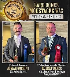 Caution For Serious Mustaches Only - If you are a man looking to take his mustache game to the next level Bare Bones is the mustache wax for you. The right ladies will take notice & people will talk to you regularly about your stylish mustash grooming skills. NO hairdryer or a heat source is necessary to warm the wax. Just like the name, Bare Bones is the perfect medium hold, the Bare Bones you need to tame master piece of masculinity Award Winning Medium Hold - Our mustache wax has a pliable semi-sticky tacky glue like wax feel that holds those unruly stash whiskers in place for up to 8+ hours. Unlike other waxes that leave your moustache looking gunky and waxy our waxes preform in a way that gives your mustachio perfect styling and does NOT “pill" up. Perfect for men grooming brown, black, red, grey or white handlebar mustaches Bare Bones Mustache Wax Ingredients - A perfect combination of Beeswax, Pine Rosin, Lanolin, Organic Jojoba Oil Organic shea butter & Organic Coconut Oil! Our handcrafted Bare Bones wax is made of all-natural & organic ingredients, this results in being able to strengthen and condition your hair and skin while looking Bad A$$ Made In The United States Of America - Our products are produced in Woodland Park, Colorado USA! Our Parent Company Vintage Grooming was founded by a US Veteran & we're grateful for all those who have served Bare Bones Mustache Wax Promise - If you are not happy for any reason contact us and we'll make things right