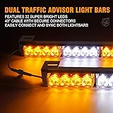 Xprite White Amber LED Emergency Traffic Advisor Strobe Dual Light Bar w/Control Box, Windshield Visor Suction Cup Safety Hazard Warning Flashing Lightbars, for Construction Vehicles Pickup Trucks