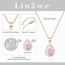 Crystal Pendant Necklace for Women: This necklace features a sparkling pear-shaped gemstone that captures the light beautifully, the imitation diamond pendant is made of high quality cubic zirconia stones that sparkle in the light. Rose Gold Plated Necklace: This rhinestone necklace is made of high quality copper and rose gold plated. The chain is the perfect length is 17" with 2.2" extender to wear alone or layer with other necklaces. Various Colors Available: The Cubic Zirconia Solitaire Pendant is available in Clear, Emerald, Ruby, Citrine, Amethyst, Sapphire, Aquamarine, Pink, Black, perfect for anyone who loves sparkling accessories. Sparkling Simulated Crystal Necklace Set: We also have matching teardrop earrings and bracelets to go with the necklaces, there is a link to purchase them at the bottom of the detail page or just search "Linawe" on Amazon to purchase them. Birthstone Costume Jewelry: This is a classic and timeless piece of women's jewelry. Whether you're dressing up for a special occasion or just looking for a simple necklace to wear every day, this necklace set has you covered.