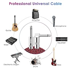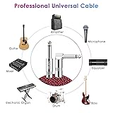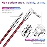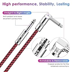 Wide Application, Strong Compatibility: Suitable for the devices of electric acoustic guitar, mixer, power amplifier, bass, pedal effector, electronic organ or drum, decoder, equalizer and other musical instruments with interface of 6.35mm diameter Straight to Right Angle: Compared with straight heads, right angle heads can protect the guitar sockets from unnecessary stress damage. The connection is stable, no longer worry about the embarrassing scenes of sudden no sound due to being unplugged Updated Version: With high-density OFC 95% braided shield and higher quality TPE material insulation, Sovvid electric guitar cable has better noise rejection and anti-interference comparing other spiral braided and aluminum layer guitar cable Faster Audio Transmission: Sovvid guitar cables have high purity 22AWG oxygen-free-copper in center conductors and insulator shield which can enhance signal transfer and stability. Keeps no-delay audio transmission and ensures minimum signal loss transfer Superior Durability: 15000+ bend lifespan tested braid nylon jacket has better tensile strength and abrasion resistance than other stiff plastic jacket. Prevent twisting and tangle free. The rotatable copper casing protect the soldered connections better