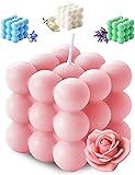 Aokala Scented Bubble Cube Candles - Home Decor Aromatherapy Candle, 5.4 oz Soy Wax, Rose (Pink)