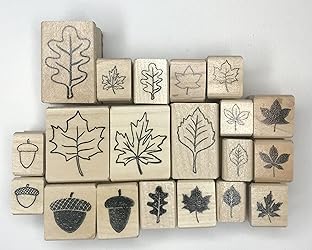 - 20-piece rubber stamp set of leaf and acorn designs. This is the perfect set for journaling, card making and many other rubber stamp crafts. Stamp sizes range from 1 1/4 inches to a half inch.