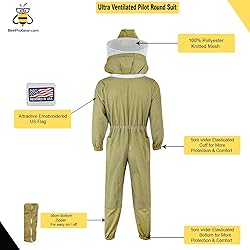 Ventilated Brown Bee Suit: Our BeeProGear Beekeeping Suit is perfect for both men and women, with a top-to-bottom ventilation system that ensures you stay cool and comfortable while working with your bees. Detachable Round Veil with Easy Zipper Handling: The BeeProGear Bee Suit for Men comes with a detachable Round veil, featuring 30mm ring pullers for easy handling of zippers and an antifold strip to prevent accidental folding. Multiple Pocket Design: Our premium BeeProGear Beekeeper Suit is designed with 5 pockets (2 chest pockets, 2 back pockets, and 1 arm pocket), providing maximum storage space for your beekeeping tools and accessories. Professional Sting-Proof Protection: The BeeProGear brown Bee Suit for Women is made of 3X ultra-protective layers, ensuring maximum safety against bee stings and other bee-related hazards Weather-Friendly Material: Our BeeProGear Bee Suit is made of high-quality mesh fabric with 80% Polyester and 20% Cotton, making it suitable for all weather conditions, so you can wear it comfortably even in hot or cold weather.