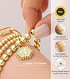 Gold Bracelet Stack: This 14k Gold Plated gold bracelet set for women features 4 unique styles: two 7.25" delicate 4mm beaded bracelets, one 7.25" bold 6mm beaded bracelet, and a modern 7.8" paperclip link chain. Designed to be worn together or mixed with your favorite pieces, This 14k Gold Plated gold bracelet stack adds dimension, shine, and charm to any outfit. One bracelet is adorned with an initial charm,a personal touch to represent your name, a loved one, or a meaningful word. Stretch Gold Bracelets: Crafted with durable elastic cord, each bracelet for women stretches to fit most wrist sizes, offering a snug yet comfortable fit that won't pinch or pull. Whether you're dressing up or keeping it casual, these beaded bracelets slip on in seconds,no clasp, no fuss. Charm Bracelet: These gold bracelets are made with high-quality copper beads and finished with 14K gold plating, providing a smooth, polished look perfect for everyday wear. This stackable gold bracelet set is nickel-free and lead-free, making it safe for sensitive skin. Gifts for Her: The gold bracelet set arrives in an elegant gift pouch,ready for gifting. Whether it's for your mom, sister, best friend, or yourself, this meaningful initial bracelet set makes a perfect gift for birthdays, Valentine's Day, Mother's Day, Christmas, or "just because". A personalized, trendy gift that says "you're special". Doubgood Service: Please search for DOUBGOOD on Amazon, double surprise for you. And please feel free to contact us if you have any questions about our initial bracelet, we'll solve it within 24 hours.