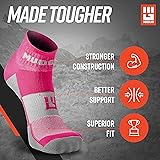 MudGear Multi-Length Trail Running Sock Bundle - 1 Pair of Premium Tall Compression Socks + 2 Pairs of Quarter Length Trail Running Socks (Pink/Gray, Medium)