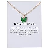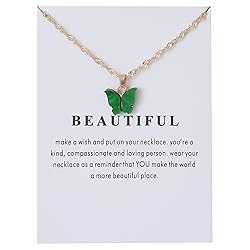 Butterfly Design:Butterfly is one of the representatives of the loyal world,because it has only one partner in its life,and it has happiness,so they are also representatives of happiness.The butterfly necklace is an excellent choice for you to express love to your loved ones. Material:This butterfly necklace is made of alloy and acrylic,nickel and lead free,comfortable to wear. Wish Card:The necklace starts with a greeting card to show that you value your lover,friend,colleagues and more,we hope everyone get the best wishes and the sincere words from time to time pull at your heart. Adjustable Size:The length of the necklace is 43.5cm/17.1inch+5cm/1.97inch,it is adjustable,one size fits most. Ideal Gift:It is an ideal gift for your best friends,lovers and family members.Perfect gift choice for Valentine's Day,Anniversary,Birthday Party, Christmas,Wedding,Graduation,Halloween.
