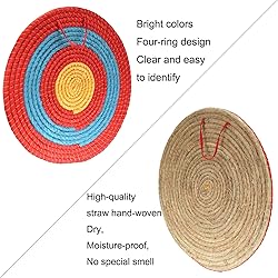 TRADITIONAL ARCHERY TARGETS:AUVIM archery target is made of degradable forage material, which does not pollute the environment, can be reused, and has no harm to the arrows. It is an ideal choice for archers,including kids, youth beginners and adults. 100% HANDMADE ARCHERY TARGET:It is a circular archery target made by hand-woven circles of straw, which is strong and durable. TARGET SIZE(APPROX.): (19.7" x 19.7" x 0.78" for 1 layer) (19.7" x 19.7" x 2.3" for 3 layers)(19.7" x 19.7" x 3.9" for 5 layers).The archery target is handmade by farmers, not the standardized production process of the factory, so there will be a certain error in the size, so please be careful to buy if you mind. CHOOSE SUGGESTION: Based on a shooting distance of 10 yards with bows below 15lbs,a 1-layer target can be selected.20-30 yards with bows below 35lbs,a 3-layer target can be selected.For bows that are more than 35lbs, the 5 layer targets will be better. APPLICABLE PLACE: The bows targets are perfect for archery practice,bow hunting shooting, backyard archery play and more outdoor sports. ART COLLECTION: If you are an archery lover and also a collector of handmade works, then this product is definitely suitable for you. You can collect it at home as an ornament or as a gift to others. ENJOY YOUR HAPPY TIME WITH AUVIM ARCHERY TARGET:We are happy porters and at the same time we are also collectors of art.AUVIM hopes can bring you happiness. Note:We promise to provide high-quality products as well as high-quality after-sales service. If you have any questions in the process of buying an archery target, please contact us and we will provide round-the-clock service.