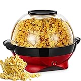 【28 Cups Fresh Popcorn within 4 Minutes】HOUSNAT 800W electric popcorn maker can make 28 cups of cinema-fresh popcorn for your family and friends at the same time within 4 minutes so you can enjoy the delicious taste. At the same time, the updated rapid heating technology makes the HOUSNAT popcorn machine 50% faster than the traditional stir popcorn maker, no need to preheat, no need to wait 【Electric Stirring & Heating Evenly】The newly upgraded electric stirrer heats the popcorn evenly for better popcorn performance and improves the popcorn popping rate. It can pop up to 100% of the corn you put in, crispy popcorn will pop but not burn; At the same time, this electric stirrer of popcorn machine also has a reverse function to prevent the popcorn from burning. 【DIY Your Favorite Popcorn】Do whatever you want! Make it your favorite flavor! Various condiments such as butter, sugar, salt, cheese, etc. can be placed on the non-stick coating. You can also put the sliced butter directly on the transparent top cover. Preservative-free, hot fresh popcorn for a healthier life.——Eat right away, it tastes better!After there is no popping sound, Please turn off the popcorn machine immediately and lips the popping plate vertically 180 degrees. 【Quiet & Easy to Use】 The HOUSNAT popcorn machine works almost silently compared to other hot air popcorn maker. With just one button, you can enjoy delicious popcorn, easy and convenient. Removable black non-stick plate and transparent cover can be flipped, the transparent cover automatically turns into a popcorn machine bowl, and no need to flip the whole machine. 【Easy to Store & Clean】The popcorn maker's new non-stick plate is easy to clean by wiping with a damp cloth. The large clear lid can be used as a popcorn bowl and the lid is dishwasher safe or wiped clean. This retro-looking popcorn machine can be used as a decoration or stored in a closet. 【With the Whole Family & Friends】Perfect for movie nights, low-calorie healthy snacks when friends come over, or when you want to enjoy delicious snacks with children! the popcorn popper is an ideal gift for Thanksgiving, Christmas, New Year, housewarming, etc. 【Note】When the popcorn machine is working, please remove the black top cover to circulate the ventilation; Vent design prevents steam or condensation from forming on the clear lid and keeps popcorn crisp. Cool-touch handle design prevents burns when flipping the ejector plate. 【Better Experience】HOUSNAT are here to offer you only the best quality products that will make your life easier and more fun. If you need any help, our professional customer support is always there for you.