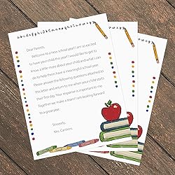 Includes: 50 Sheets of 8.5" x 11" decorative letterhead. Standard Size: Letter size paper is compatible with standard #10 or A9 envelopes. Vibrant Design: This bright and cheerful teacher letterhead includes a whimsical apple, crayons, books, and alphabet illustration. Perfect For: Use this adorable letterhead for back-to-school memos, certificates, diplomas, class lists, welcome letters, and more! Great gift for teacher appreciation. Printer Friendly: High quality stock is printer friendly and compatible with most home or office printers Easy to print and send.