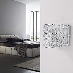 - 【Modern crystal wall decor Style】The Crystal Wall Light adapts chrome finish and finely cut premium grade crystal as lampshade, it can create sparkling and elegant atmosphere,Perfectly mounting on the wall at the dressing room powder room, or the TV Wall.