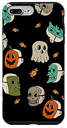 Ghost Skull Candy Pattern Vintage Spooky Halloween Creatures Case for iPhone 7 Plus/8 Plus