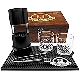 INCLUDES EVERYTHING YOU NEED FOR THE REFINED DRINKING EXPERIENCE - Our Ice Press Kit V2 includes an Ice Press made from anodized aluminum made in the USA, a pair of stainless-steel tongs, two whiskey glasses, a Pressice Barware cocktail bar mat, two black leather coasters, a (4) cube ice tray with lid, and a drip tray. YOU ASKED, WE LISTENED – We took all your feedback and used it to perfect the Ice Press Kit V2. Not only did we increase the size of the ice sphere to 2.3”, but we also included an extra whiskey glass (because who wants to drink alone?), two coasters, a larger bar mat, and a drip tray to collect excess water runoff (no more mess). Additionally, we added a silicon lid to our (4) cube ice tray to prevent spilling water on your way from the sink to the freezer. NO MORE CHEAP SILICONE TRAYS - Our press is machined from 6061 superior grade aluminum stored in a pine wood box designed to last a lifetime. Everyday ice trays produce inconsistent and imperfect ice spheres. The weight and conduction of our anodized aluminum ice press compresses the ice cube during formation, helping to align grain boundaries and form a solid sphere resistant to melting. WITHOUT A DOUBT THE PERFECT GIFT FOR COCKTAIL ENTHUSIASTS - Effortlessly transform an ice cube into a perfect 2.3” sphere in less than a minute. Re-heat and repeat our Ice Ball Press for unlimited spheres. Used by bartenders across the country, a cold drink no longer means a watered-down drink. Chilling the spirits without diluting their distinctive flavors is the secret to serving any cocktail on the rocks. QUALITY MATCHED WITH INTEGRITY - Our customer service team is at your service 24/7. Did your pine box or ice press arrive damaged? We’ll replace it. Questions, comments, or concerns? Please reach out to us, we’d love to hear from you. Our team’s top priority is your satisfaction.