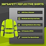 BeautyWill High Visibility Shirts Long Sleeve Class 2 Reflective Shirts ANSI with Pocket Safety Shirts for Men and Women