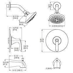 TUB AND SHOWER TRIM KIT – Includes shower head, valve handle, and tub spout; 3-hole installation; valve body sold separately; wipe clean nozzles allows you to wipe away mineral deposits with the swipe of a finger MULTI-FUNCTION SHOWER HEAD – Includes 5 spray modes; champagne spray provides a rejuvenating experience; full spray and massage combo is relaxing; rain spray has a soft, even flow; invigorating spray applies direct pressure to relieve tension EASY TO INSTALL TUB SPOUT – QuickConnect allows for fast, easy tub spout installation by slipping the adapter over a copper pipe and securing with a set screw WATER-EFFICIENT – Meets or exceeds EPA WaterSense Standards to reduce water consumption by 30% and help average households lower their water bill; meets or exceeds CALGreen criteria, which helps conserve water in the average home by at least 20% LIMITED LIFETIME WARRANTY – Trusted since 1910, Pfister Faucets has been a leader in quality plumbing products; all faucets are backed by our Limited Lifetime Warranty, covering finish and function for as long as you own your home.