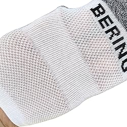 - Introducing the BERING Kids Athletic Socks, the perfect choice for active boys and girls. Made from high-quality moisture wicking material, these kids socks are designed to keep feet dry and cool during intense physical activity. The ventilation mesh adds an extra layer of breathability to ensure maximum comfort. The cushioned heel tab provides protection against blisters and prevents socks from slipping into shoes, making them easy to put on and take off. The high-volume cushion gives added impact protection and comfort without adding bulk, ensuring that these youth socks will not cause any blisters. The arch band provides additional support and a secure fit, ensuring that the socks stay in place during even the most intense activities. The reinforced toe and heel high wear areas are durable, making these socks able to withstand multiple activities and washing. Available in medium (shoe size 9-2.5 for ages 5-9) and large (shoe size 3-9 for ages 9-12), these short athletic socks are suitable for a range of activities such as running, jumping, walking, school activities, and everyday wear. In summary, the Bering Athletic Socks offer a comfortable, durable, and breathable option for active kids. With their unique design features, they are the perfect essential item for any kid's wardrobe.