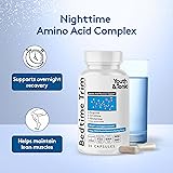 - Bedtime Overnight Trim is a nighttime amino acids supplement designed for men and women who follow an active lifestyle and are looking to support lean appearance, muscle definition, and recovery as part of their evening routine. This amino acids supplement provides a targeted blend of essential amino acids, commonly used to support muscle maintenance and recovery during rest. Each capsule features a carefully formulated amino acid complex including L-Arginine, L-Ornithine, L-Lysine, and L-Glutamine, along with supportive ingredients such as Colostrum Powder, Ornithine Alpha-Ketoglutarate, and L-Glycine. These ingredients are widely used in amino acid supplements and amino acid nutritional supplements designed to complement recovery and conditioning, especially when taken at night. This non-stimulant, caffeine-free formula is designed specifically for bedtime use, working in harmony with the body’s natural overnight processes. By providing amino acids during rest, this supplement supports overnight recovery and muscle maintenance without interfering with sleep, making it suitable for consistent evening use. Bedtime Overnight Trim is often chosen by those following a workout plan, balanced nutrition, or even a keto diet. Often used as part of weight loss routines, this amino acid supplement is designed to complement recovery, muscle maintenance, and an active lifestyle. Rather than acting as a stimulant, this formula supports recovery-based energy, helping users wake up feeling refreshed and ready for the day when used consistently alongside a balanced diet and regular movement. This versatile amino acid supplement for women and men fits seamlessly into daily routines focused on fitness, recovery, and overall body conditioning. Whether you are looking for amino acid supplements, amino acids capsules, or a non-stimulant nighttime supplement to complement your fitness goals, Bedtime Overnight Trim offers a practical option designed for overnight use.
