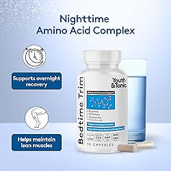 Youth & Tonic PM Bedtime Trim for Lean Appearance & Muscle Definition Support – Nighttime Amino Acids Supplement for Overnight Recovery, Men & Women, 30 Capsules