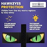 HAWKEYES: These large scary HawkEyes are designed to frighten predators and help prevent attacks from birds of prey. The idea is that a raptor will be able to see these large eyes from a great distance and will be dissuaded from even considering an attack. EFFECTIVE PROTECTION FOR YOUR DOGS AND PETS: Their purpose is to reduce the chance of being attacked by a bird of prey when you and your small dog are out for a walk, training, hiking, or camping. FAST ATTACHMENT/REMOVAL WITH VELCRO STRIPS: The HawkEyes can be placed anywhere on a CoyoteVest, SpikeVest, or HawkShield. They attach with double sided Velcro and can be layered with other vest accessories. LIGHTWEIGHT MATERIAL: The vivid graphics are printed on waterproof vinyl decals and attached to a durable lightweight plastic sheet. UNCOMPROMISED SAFETY: Just like yourself & your family, your lovely pet dog also deserves uncompromising safety while walking. Pet safety HawkEyes safely allow your pet dog to intimidate flying predators that might be considering an attack.