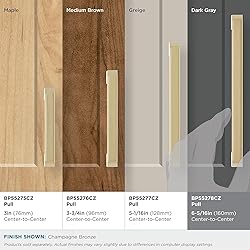 Transitional style cabinet pull combines classic and contemporary elements to create a versatile style perfect for cabinets, drawers or furniture and has an overall length of 7-1/4 inches with a 6-5/16 inch center-to-center measurement between mounting holes Champagne Bronze cabinet handle delivers a warm, elegant style with a soft, sophisticated gold tone that coordinates with top plumbing and lighting brands for a timeless, seamless look Made with high-quality zinc, this Amerock cabinet pull features detailed craftsmanship and offers exceptional durability for long-lasting reliability you can trust Premium quality cabinet hardware pull comes with mounting hardware for easy, hassle-free installation Backed by a limited lifetime warranty ensuring qualiy craftsmanship and material integrity