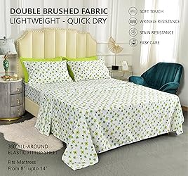 - Experience ultimate comfort with the American Home Collection Printed Pattern Bedding Sheets & Pillowcases Set, designed to elevate your sleep. Each set includes 1 flat sheet, 1 fitted sheet, and 4 pillowcases (Twin size includes 2 pillowcases). Crafted from high-strength microfiber yarns that are double-brushed for extra softness, these sheets are lightweight, breathable, and gentle on the skin. Built to last, they are wrinkle, fade, and stain resistant, ensuring long-term durability. The quick-dry fabric makes maintenance easy, machine wash in cold water separately, avoid bleach or bleach-based detergents, and tumble dry on low to prevent pilling. Ideal for master bedrooms, guest rooms, or kids’ rooms, these sheets combine style, functionality, and quality for a better night’s sleep.