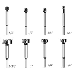 【COMPLETE SPECIFICATIONS】Forstner bit set includes 8 pcs, most commonly used sizes: 1/4" (6.3mm), 3/8" (9.5mm), 1/2" (12.7mm), 5/8" (15.8mm), 3/4" (19.0mm), 7/8" (22.2mm), 1" (25.4mm), 1-3/8" (34.9mm), the bits make clean cuts and easily stored between jobs. Helps you drill great, clean, flat bottom holes in wood quickly. 【HIGH-QUALITY MATERIALS】Forstner bit set made of carbon steel, durable. Provides long-term effective work performance and safety performance in continuous drilling. The rounded edge design ensures that the desired round shape is drilled in all aspects. 【EASY TO USE】The tooth-shaped bevel cutting edge design ensures easier cutting and less frictional heat, spacious chip evacuation, smooth chip evacuation and high efficiency. 【CENTRAL POSITIONING】The central tooth of the Forstner bit ensures precise and stable positioning during operation, ensure precise drilling and prevent shaking and walking during operation. 【WIDELY USED】Suitable for power drills, power drills, bench drills, vertical drills, hand drills and floor drills, which are used to assemble spherical door drive tips, drawers; Wood products, plastic products, wood and plywood drilling.