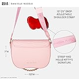HELLO KITTY HANDBAG: Pretty pink quilted messenger bag purse featuring Hello Kitty embroidered on the front with matching pink stitching, and contrasted with gold chain details and a red bow coin purse wallet charm ABUNDANT STORAGE: Hello Kitty cute purse features 2 interior pockets (1 back wall zip pocket and 1 front wall zip pocket) for storing small accessories, and a zip closure to keep items secure inside; includes an exterior removable bow style coin purse for keeping your coins and bills easily accessible LIGHTWEIGHT AND PORTABLE: Crossover purse features a convenient shoulder strap with a 10.5 inch drop to allow for easy carrying PREMIUM QUALITY HANDBAGS: Fashion handbags are official Danielle Nicole products in partnership with Hello Kitty DURABLE: Purses are composed of strong and sturdy polyurethane material with polyester interior lining with a bow pattern, and are decorated with visually striking gold hardware; measures 10 H x 12 W x 2.5 D in inches