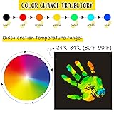 Sufficient quantity: there are 3 packs of sheets, which are sufficient to satisfy your different use demands, you can share one of them with your friends or colleagues; Do not expose to direct sunlight, prolonged exposure to sunlight may affect the color rendering performance of sheets Proper size: each sheet measures approx. 15 x 15 cm/ 6 x 6 inch, which can be cut to suitable size and shape by professional machines, use your imagination Color change temperature: these sheets are temperature sensitive, and the color change temperature range is 24 to 34 degrees Celsius/ 80 to 90 Fahrenheit Celsius and the color change track is from black to red to orange to yellow to green to cyan to blue Widely applicable: these 6 colors changing sheets can be applied for most black surface that is not water soluble, such as cups, mouse, keyboard, etc., showing your personality fully; This sheet can produce multi color changes within a fixed temperature range, so they can also be applied for science experiments Create much fun: with spectrum of 6 different colors design, our 6 x 6 inch sheets allow you to press your hand or other patterns you love on them, which will fuse and fade within seconds as the crystals respond to temperature, adding fun to your daily life