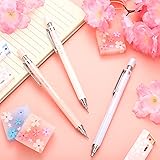 Package Contents: there are 6 pieces of cherry mechanical pencils and 6 tubes of refills in 3 colors, and 3 pieces of cherry blossom erasers in 2 colors at random, nice combination can meet your daily writing or drawing needs; They also can be applied as delicate present given to your kids, friend, classmates, colleagues and more Smooth Writing: you can extend the refill with a push of the button, the cute pencil is equipped with a plastic pen barrel for nonslip gripping and weight balance, giving you a smooth writing experience Equipped with Eraser: the top of the cute mechanical pencil is designed with a eraser, you can easily remove the cap, then use the eraser to wipe the wrong writing, bringing many conveniences for you when you forget to bring the eraser Sturdy Material: the aesthetic pencils are made of quality plastic material, which is sturdy enough that not easy to break, with rubber clamp to conveniently clip on the book, notebook, pocket for easy carrying and storage Beautiful Design: the mechanical pencil set is printed with beautiful cherry blossoms, matching with mainly pink, blue, and white colors, look exquisite and attractive, suitable for girls and women