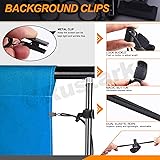 - ♞ Rustark Backdrop Heavy Duty Spring Clamps Elastic Photo Clips Holder Clips Assortment Kit with Curtain Clips Backdrop Rings Metal Backdrop Clips Clamps for Photography Video Studio Photo Backdrop ★【SPECIFICATION】★ ✯Size : Please see the 2nd picture for more size information. ✯Material: steel material ✯Color: black ★【THE ADVANTAGES OF THIS KIT】★ ●Reliable & Good Quality - Made of strong steel material that is able to withstand various weather conditions. ●Great Combination- Come in 6 heavy duty backdrop clamps + 6 elastic backdrop clips holders + 10 curtain rings with clips in 1 kit, which will fill your various needs. ●Practical Design- Featuring non-slip rubber tips keeps the green screens flat and stable, while provides great holding power. ★【PACKAGE INCLUDES】★ 6 x heavy duty backdrop clamps 6 x elastic backdrop clips holders 10 x curtain rings with clips Total: 22pcs ❤Warm Tips: -If you come across any questions, please feel free to come to us. We will solve it for you as soon as possible!