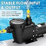 - Elevate your swimming pool experience with the Seeutek 1.5 HP Swimming Pool Pump, a powerhouse of performance and durability designed to keep your pool pristine and inviting. Crafted with a heavy-duty, corrosion-proof construction, this pool pump is built to withstand the rigors of both in-ground and above-ground pools and spas. The stainless steel motor shaft, reinforced with a thermoplastic body, ensures a longer lifespan and unmatched durability, making it a reliable choice for pool owners.Experience the perfect blend of efficiency and tranquility with our advanced engineering that delivers high performance while maintaining minimal noise levels. The airflow ventilation system not only enhances the pump's efficiency but also ensures optimal water circulation, keeping your swimming pool clean and sanitary. Whether you have a small backyard pool or a large commercial spa, this 1.5hp pool pump is versatile enough to meet your needs.Key Features:Stainless Steel Motor Shaft: Designed for powerful high-performance and long-lasting durability.Dual Voltage Operation: Switch between 115V and 230V for greater flexibility and operational possibilities.Large Filter Basket: Easy to check and clean, reducing maintenance frequency and ensuring consistent performance.Energy Efficient Motor: Maximizes flow while reducing noise, thanks to a commercial-grade frame.Anodized Motor Body: Resists chemicals commonly found in swimming pools, enhancing longevity.Simple Installation: Inner and outer thread design for hassle-free setup.Specifications:Material: Stainless Steel and PlasticSize: 22.4 x 9.4 x 11.5 InchesDual Voltage: 115V / 230VRate: 60HZPower: 879WHorsepower: 1.5 HPMax Flow: 62.53GPMMax Head: Up to 50.8 FeetLiquid Temperature: Lower than 55℃Motor Temperature: Lower than 50℃Package Includes:1 x 1.5 HP Swimming Pool Pump2×1.5" + 2×2" + 2×1.25" Adapters1 x ManualInstallation Tips:Select a well-drained area that won't flood during rain and allows free air circulation for cooling.Consult a qualified professional during installation.Heighten the pump base to keep it off water or moist environments.Transform your pool maintenance routine with the Seeutek 1.5 HP Swimming Pool Pump. Whether you need a reliable pool pump for your inground pool or a robust solution for above-ground pools, this pump is your go-to choice for efficiency, durability, and performance.