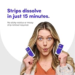 Once-a-day treatment – 15-20 minutes – whitens teeth up to 9 shades. Just 7 days to complete 1 treatment. See results in as soon as 3 days. Half the wear time compared to other 30-minute wear strips. Enamel-safe and specially formulated for sensitive teeth. Designed to wear any time anywhere, even while sleeping. Strips dissolve, so there’s no messy residue or sticky strips to remove. Special conditioning agent extends results and smooths teeth. Flexible wear options (1 complete treatment [once a day for 1 week]), Weekly maintenance [1 application once a week], Monthly whitening routine [1 complete treatment once a month]). Touch-ups (whenever whitening is needed). Safe to use for up to 14 days straight for stubborn stains.