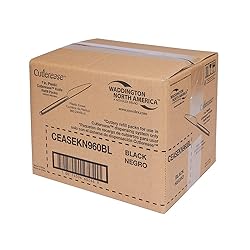 Case of 960 black plastic knives, case contains 24 refills of 40 knives Cutlerease system automatically dispenses one piece of cutlery at a time Tape tabs offer sanitary handling of cutlery refill packs and easy pick up Handle-first delivery maintains cutlery’s sanitary eating area Made in the USA