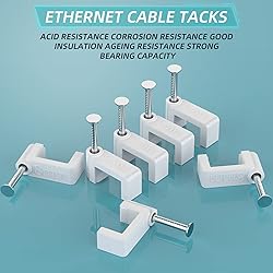 Package included 100pcs 8mm(0.32 inch) cable clips. Cable clips allow you to secure runs of round cables like Coax to walls and floorboards for a cleaner look and prevent tripping over loose cables. Easy installation - Just use a hammer to nail then to your mounting surface. Made of high-quality UV resistant and durable plastic. Acid resistance, corrosion resistance, good insulation, ageing resistance, strong bearing capacity. Nail in cable clips provide snug and secure placement of Cat5/Cat5e/Cat6/Cat6e/Cat7 Cat8 Ethernet cable,Supports most cables with a 8mm(0.32inch) outside diameter or smaller.