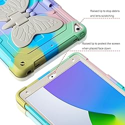 - VOFUOE Colorful Heavy Duty Butterfly Stand Series Tablet Case for iPad 9th 8th 7th Generation 10.2 inch (2021/2020/2019) Material: Premium Soft silicone rubber and hybrid hard PC + front hard PC bumper 2 in1 design. Color: Colorful green Compatible: Specially designed for iPad 9th Generation 2021 released (Model Number:A2602/A2603/A2604/A2605). iPad 8th Generation 2020(A2270/A2428/A2429/A2430) iPad 7th Generation 2019(A2197/A2200/A2198) Product Features: The super robust, shock-resistant and scratch-resistant 9th Generation Cases Protective case with stand, which you must own! Vivid and colorful butterfly design makes your iPad unique! With thisiPad 8th Generation case, you will be the most dazzling presence in the crowd. The best gift for kids, girls, friends, and family. iPad 10.2 Cases 2021 built-in Pencil holder allows you to store and carry your Apple pencil easily. Butterfly stand, free your hands, adjust various angles to watch videos and painting.