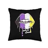 Dripping Lips with Nonbinary Pride Flag for Non-Binary Throw Pillow