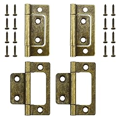 - Non-mortise bearing hinges are suitable for doors, cabinets, wooden boxes, wooden boxes and other furniture. Specification: Size: 51 x 24 x 1.2 mm Material: Iron Color: Bronze Package includes: 4 pcs non-mortise door hinges 16 pcs M3 x 16 mm mounting screws