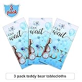 Tegeme 3 Pack Bear Baby Shower Tablecloth Plastic Bear Table Cover We Can Bearly Wait Tablecloth for Kids Birthday Party and Gender Reveal Decorations, 54 x 108 Inch (Blue)
