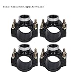 Water Drain Saddle Specifications: Including left saddles, right saddles, screws and nuts, a total of 4 sets, easy to use and replace. Main Purpose: Drain saddle tee kit is suitable for gardening and garden irrigation diversion, with multiple usages. Plastic Material: drain saddle clamp are made of excellent plastics, with light weight and good aging resistance. Applicable Tube: These quick couplings allow easy connection of pipes, suitable for 63mm pipe diameter. G1 Female Thread: With standard G1 female thread, which is tight and stable in connection and not easy to slip.