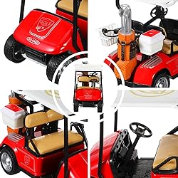 What You Will Get: a total of 4 pieces of small golf cart cars toys in the package, the main colors of the toys are red, green, blue and yellow, mixed with other colors, such as black, white and more, making the toys more vivid and delicate, ample quantities can satisfy your little ones play needs and can also share with their close friends Quality Material: the golf cart toy is made of quality pressure casting metal and plastic materials, with detailed workmanship, sturdy and not easy to out of shape, colorfast and serviceable, and the surface is smooth, will not scratch the person.Note: This product is suitable for children aged 6 and above. Please allow children to play under parental supervision to prevent accidental injury Pull Back Feature: the mini golf carts have 4 slideable wheels, the operation is simple, just needs to pull the car back and then release it, the car will be sliding forward faster; Please pay attention to that the car should be slid on smooth and flat surfaces, not suitable for uneven places Realistic Appearance: the small golf cart miniature is designed with many elements, such as steering wheel, seat, car roof and the car has golf club models in the back, these elements combined make the mini car more realistic and exquisite, which arouses little one's play interest and learning about golf carts and colors Nice Gifts: the mini golf cart decorations can be applied as gifts on most important occasions, such as birthday parties, Children's Day, Christmas, graduation ceremony, Halloween and more, to send your little ones, fathers, friends and relatives and so on; The toys are packed with transparent boxes that you can display in your exhibition cabinet, collection room, and also nice gifts for those golf lovers