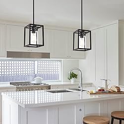 Design:This Contemporary 1 light kitchen island light features combines geometric metal frame with clear cylindrical clear glass shade in a beautiful black Application:Mount this classical fixture in several varying areas and decor.Perfect for the living room,bathroom,bedroom,powder room,dining room,office,foyer,stairway,hallway,study or bar Bulb Type:Uses for E26-base bulbs,60 max(BULB NOT INCLUDED).It can be dimmable when you used with a dimmable bulb and compatible dimmer switch.Works with any LED,CFL,Edison bulbs Easy to install:You could adjust the height as you like,all mounting hardware and instruction are included for quick and easy installation Our service:If your glass broken or have any questions about this fixture,pls feel free to contact us