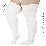 - Wool Plus Size Thigh High Socks For Thick Thighs- Extra Long Womens Warm Cable Knit Over Knee Stockings Leg Warmers…