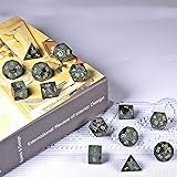 1 Set of Polyhedral DND Dice with Chakra Symbol Box: Includes 1 x D20, 1 x D12, 2 x D10(one 00-90, one 0-9), 1 x D8, 1x D6, 1x D4, 1 x Gift Box, 1 x Grey Velvet Bag for easy carrying and storage. Handmade Crystal Dice: Made from Kambaba Jasper stone, polished and smooth, clear and easy-reading numbers. Cut and engraved by hand and each stone is unique, so the stone may vary in size, texture and color. Easy to Read: These stone dices have golden numbers on each side, use underscoring to differentiate 6 and 9. The golden numbers are as large as possible on each sided for easy reading. Polyhedral Dice for Roleplaying Games: This Kambaba Jasper dice set is perfect for tabletop RPG games such as D&D (Dungeons and Dragons), and many other dice-based game. You can also using them for math games and teaching. Healing Crystal Dice Set: The Crystal DND Dice Set will be packed well in a Chakra symbol box, you can used it for crystal healing and meditation to balance your body energy. Placing this healing crystal set in your home promotes a positive flow of energy in your space or just for fengshui home decoration. They're the perfect display piece for stone collectors.
