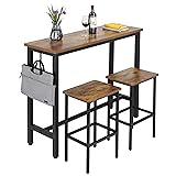 - Finnhomy Bar Table Set, 47" Pub Table High Top Table, Rectangular Bar Height Table, Bar Table with Stools, Kitchen Table Set for 2,, Industrial Breakfast for Kitchen, Living Room, Rustic Brown