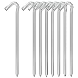 【UPGRADED LONGER METAL STAKES】5 mm thick, 9 inches long, 1 inch hook. Galvanized steel spikes with large non-slip hook and sharp tip make it easy to drive yard stakes into the ground, against heavy winds in dirt. High quality metal yard ground stakes for inflatables. 【RUST RESISTANT】Durable non-rust anchoring tent stakes pegs. Galvanized yard camping stakes do not require frequent replacement. Professional camping tent pegs, long tent stakes, inflatable stakes, tarp hooks, tall tent pegs for attaching rope or for anchoring. 【STRONG HOLDING POWER】Premium galvanized steel is more solid, ensuring safety and extending its life. Heavy duty ground stakes, 5mm sturdy stakes are stronger than 4mm steel garden stakes and aluminum camping stakes, not easy to bend. Camping essentials. 【LIGHT FOR BACKPACKING】Galvanized tent stakes metal, inflatable stakes, camping tent stakes, essential tool for securely anchoring tents. Heavy duty metal stakes for ground, each peg weighs just 1 ounce. Anchor a tent with these steel pegs, give you a stable shelter. 【GOOD TENT PEGS FOR YOUR USE】Comes in a package of 8 galvanized steel tent pegs. Multipurpose steel pegs are ideal for anchoring yard outdoor camping, tents, canopy, fencing, garden/landscape edging, shelters, tarps, little dogs, garden netting, gazebo anchors and other garden structures. Holding down any tent, just prod the peg with a hammer to drive it into the beach and keep your tent from being blown away when you are camping.