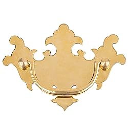 Dimensions: 3" Centers; 3-3/8" Height x 4-1/2" Width Backplate Size. This drawer bail pull is made of polished solid brass. Its sturdy construction and traditional design make this hardware a good fit when you need a stylish and sturdy bail pull. The package contains one bail, one backplate, two eyelets, and mounting hardware. This Chippendale bail pull is easy to install and gives an antique look to your furniture piece. It perfectly complements an antique dresser, cabinet, armoire, bedside table, desk, chest, and more. Our handles are a nice feature for completing an antique restoration or woodworking project. Using these pulls on kitchen or bedroom furniture can also add a vintage touch to modern home decor.