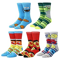 - Head to your favorite neighborhood with these Sesame Street casual crew socks. The socks feature Cookie Monster, Big Bird, Bert and Ernie, and Oscar the Grouch on blue, green, red, and gray backgrounds. These socks make a great gift for fans of the iconic characters.