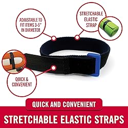 - VELCRO Brand All-Purpose elastic cinch straps with buckles conform to the shape of the item secured. These fasteners stretch tight for a snug fit and the fully adjustable closure conforms to the shape of the item, making this strap great for power cords, garden hose, camping equipment and more. Additional uses include using as boot blousing straps. These elastic straps can double as blousing garters, suitable boot bands to keep pant legs neat for biking, hiking, fishing, military uniforms, camping, hunting and other outdoor activities when used as boot blousers. Better than regular military bungy cords for blousing with boots and uniforms for boys scouts, military uniforms ocp bottoms and more. Super stretch cinch straps are fully adjustable heavy duty straps. Stretchable VELCRO Brand straps are easily fastened, and stretch VELCRO Brand straps fit adjustments for hook and loop straps are a breeze with the featured D-ring buckles. Ideas for uses are endless including bookstraps, bike straps,elastick hook straps, use stretchable nylon straps for tools and equipment in work trucks, in campers, RVs, garages and basements. Organize hoses, power cords, cables, yoga mats, garden tools, beach umbrellas, camping equipment. Heavy duty elastic straps with clips feature strong hold to secure heavy items for home, office, basement, or garage storage.